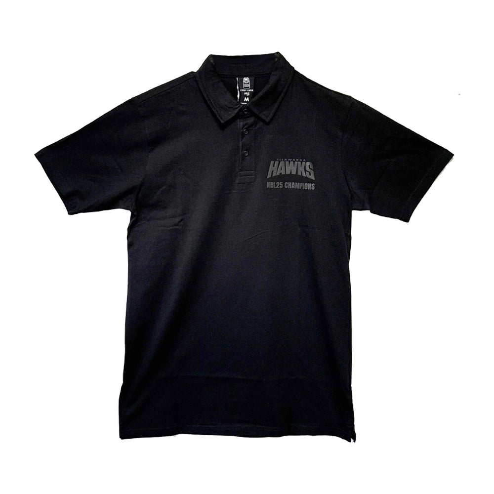 Short sleeve polo. Black on black with Illawarra Hawks wording.